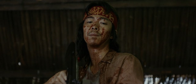 这个扫射的过程固然爽,但逻辑也是爽剧式的,假装观众和男主自己都相信,他真的能凭自己干掉一个恐怖分子团伙。